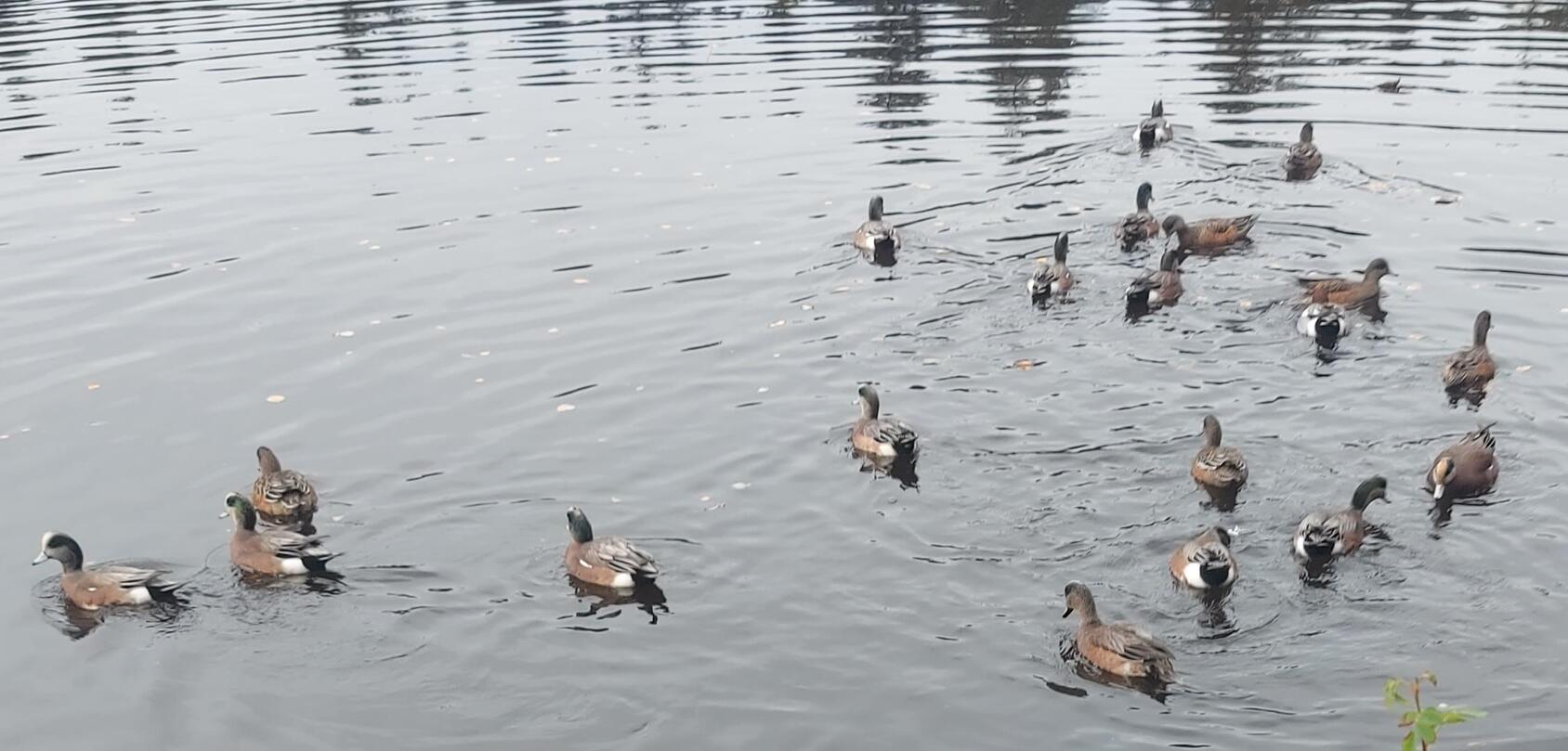 Should you see a duck-cluster (let's not say, "Clusterduck"), it mostly looks like the little one on the page, yesterday, or this one I took a little after: