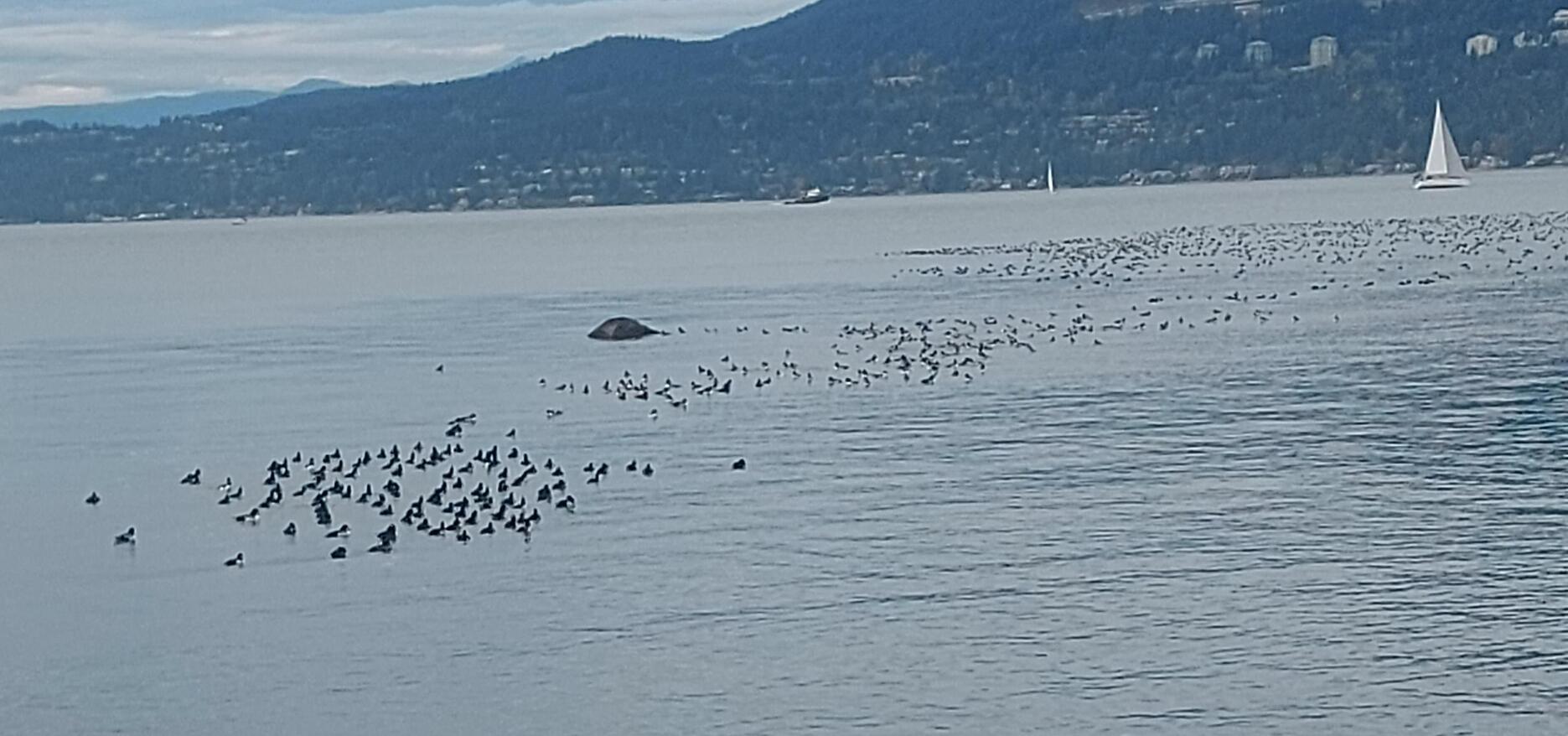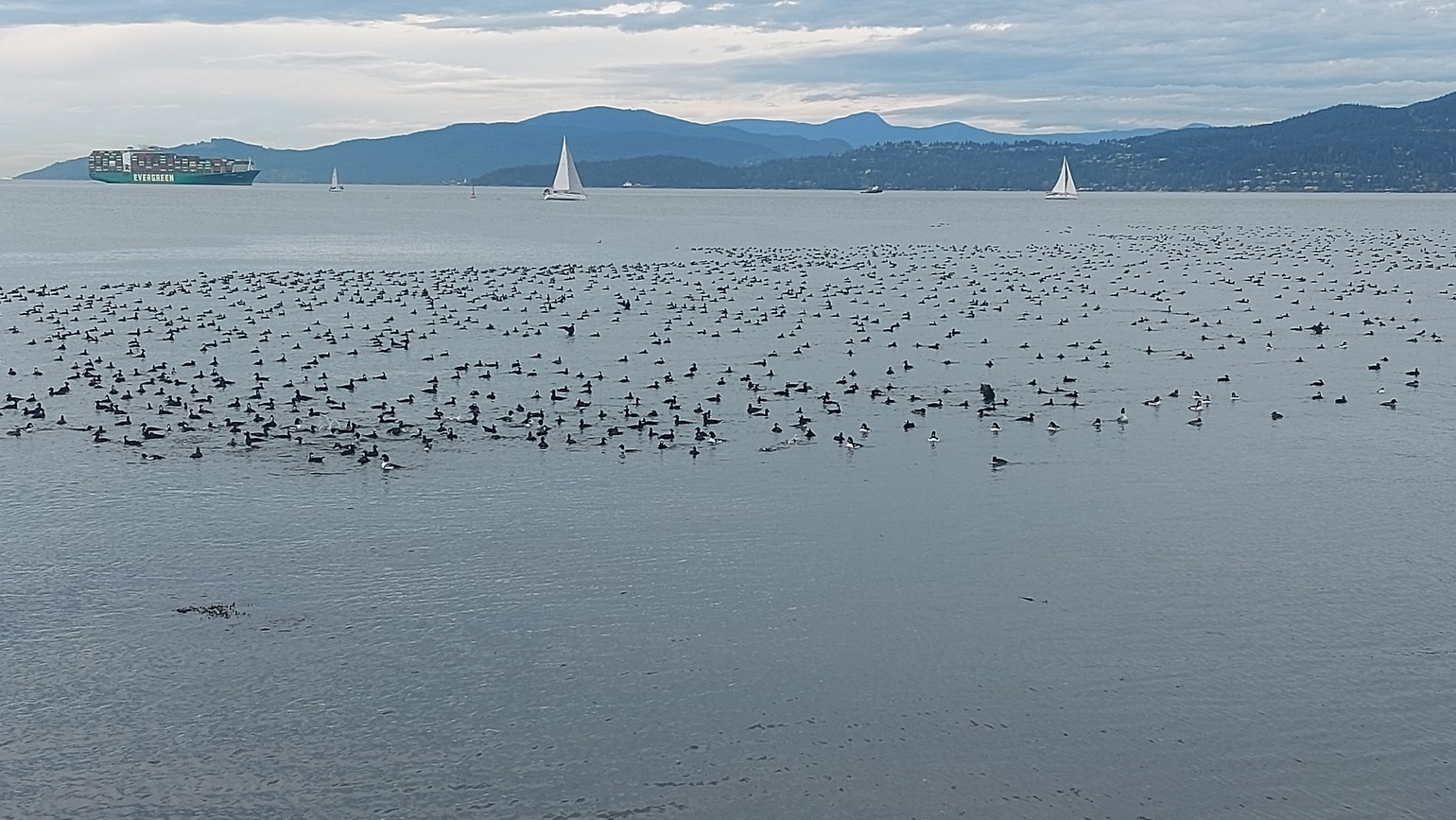 But Connie actually called me to come 'round the far west side of Stanley Park, on the Seawall, looking out towards Japan. There were a lot of people there with cameras, bewildered by a sight none of us had seen before, not in many years of Vancouver: