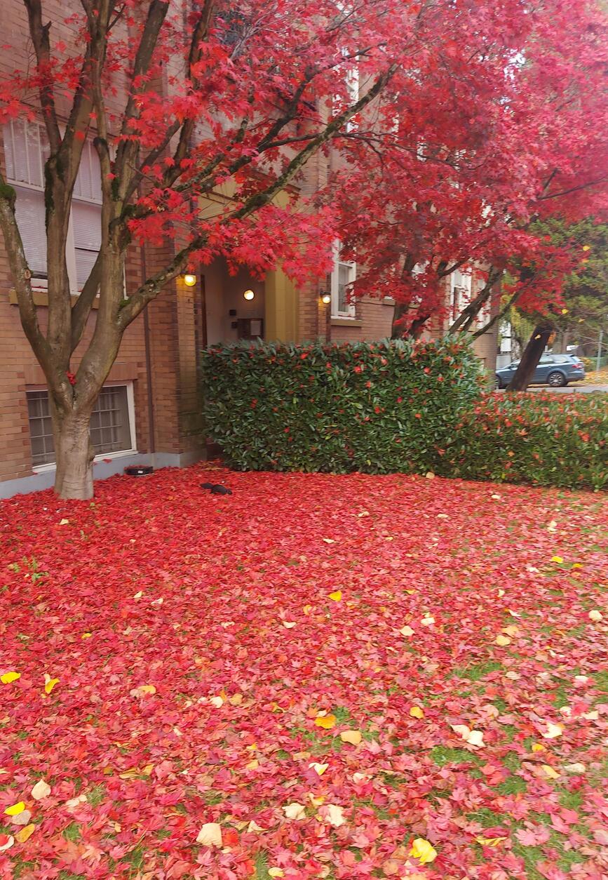 For Remembrance Day today, a red carpet. Some of the red trees in Vancouver are creating one, on their lawns, this week, and it's beyond gorgeous. But, of course, red is also for Canada, for the old Red Ensign under which they died, and the carpets of red they left on the battlefields of Belgium and France...twice.