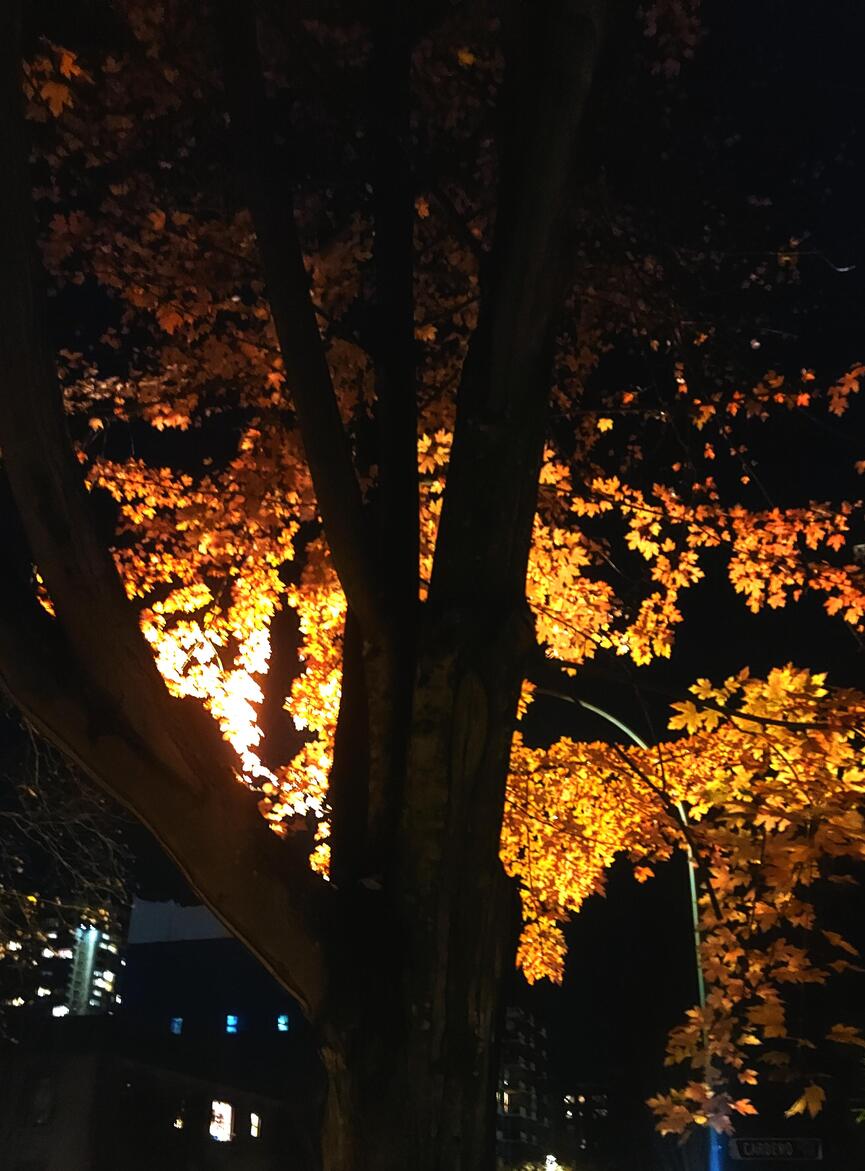Phones are not great cameras, and a night shot was a gamble. I took about six, and deleted all at once but this...and probably won't try again. I like the backlit leaves, though. Part of my "shooting through trees" days last week.