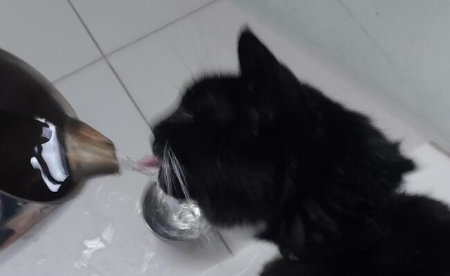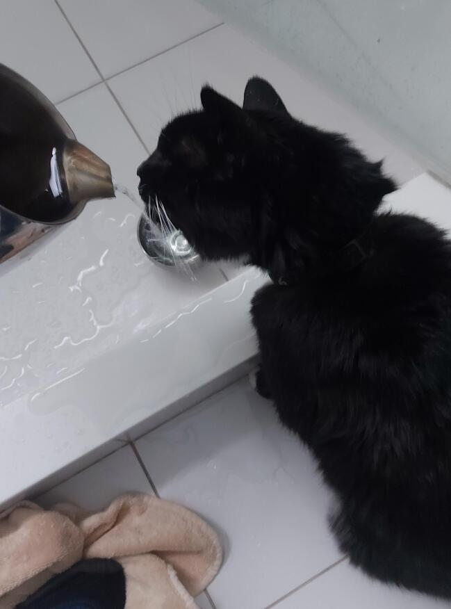Felix had just about given up ever lapping at water, even water placed right under his nose. That had me sad yesterday, though he was still getting a good 120ml of water a day from the "bisque". (That, too, will no longer be lapped at: I have to bring it up to his nose and often "boop" him with it, to get him licking at my finger. About half a millilitre per finger-ful, so I'm doing that a few hundred times a day, just as you did with Sidney, six years ago.)