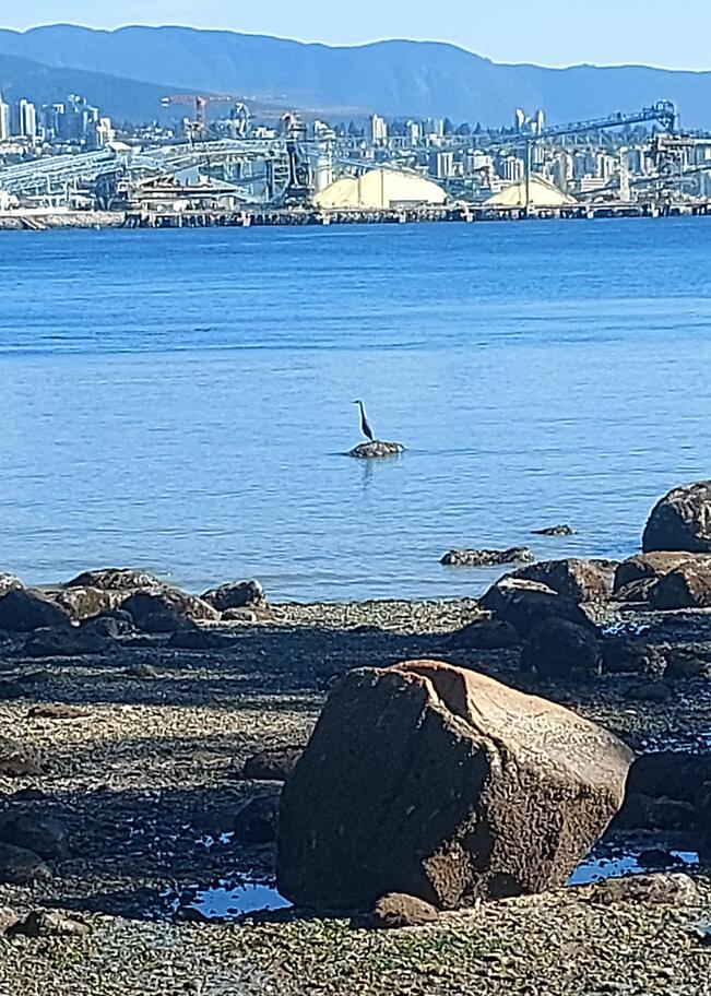 I grabbed this shot today on my run; I have done some like it, but the Heron seeming to stand Sentinel out in the Inlet, with that gloriously bright sulfur pile behind it, just insisted on a camera.