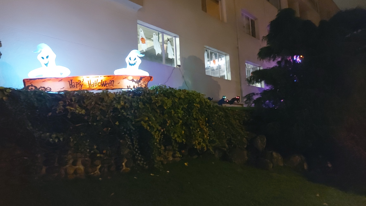 But my jaw really dropped when I went around the corner and saw that the decorations continued. Ghostbusters Ghosts, and blinking-eyed black cats...
