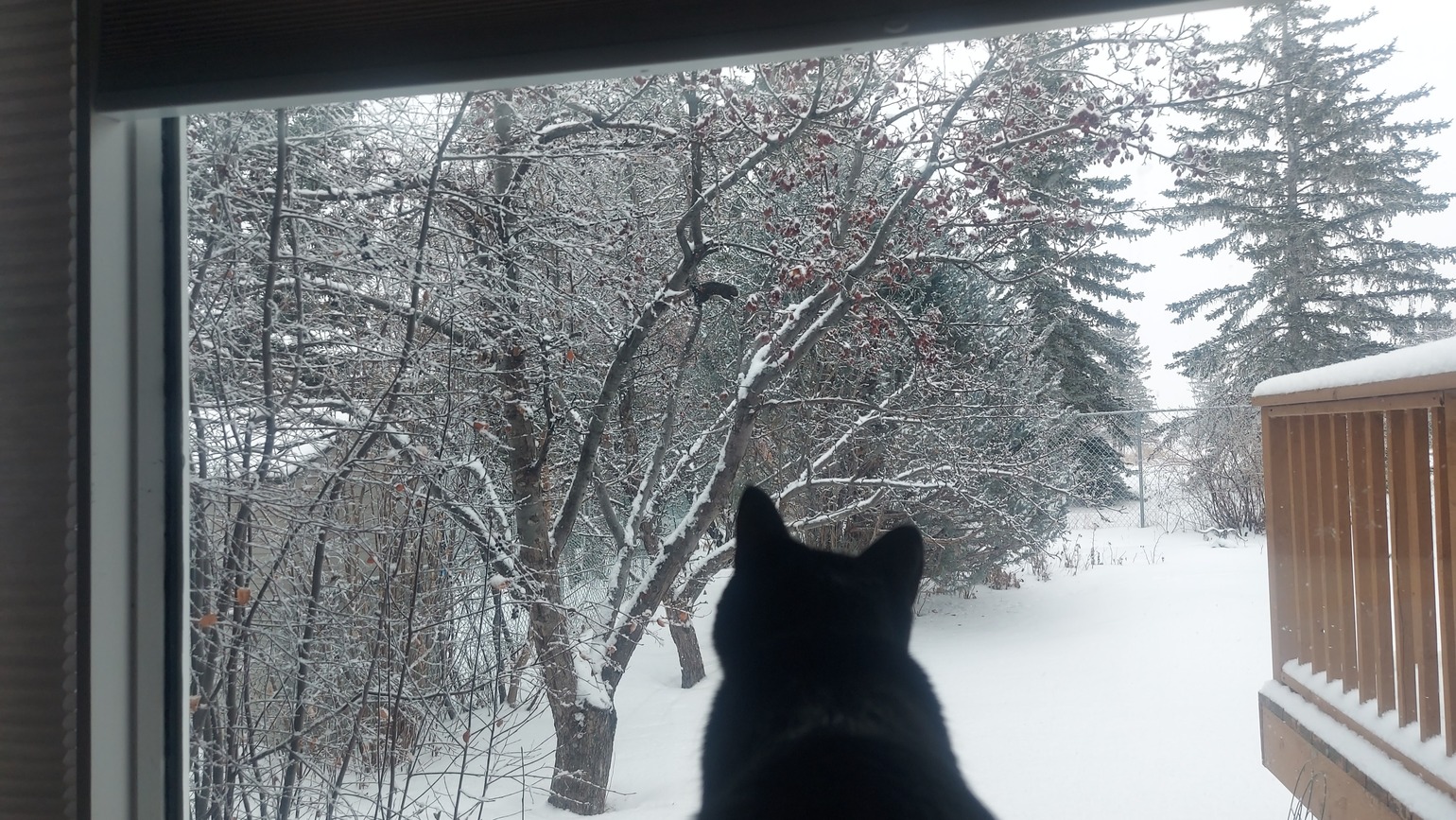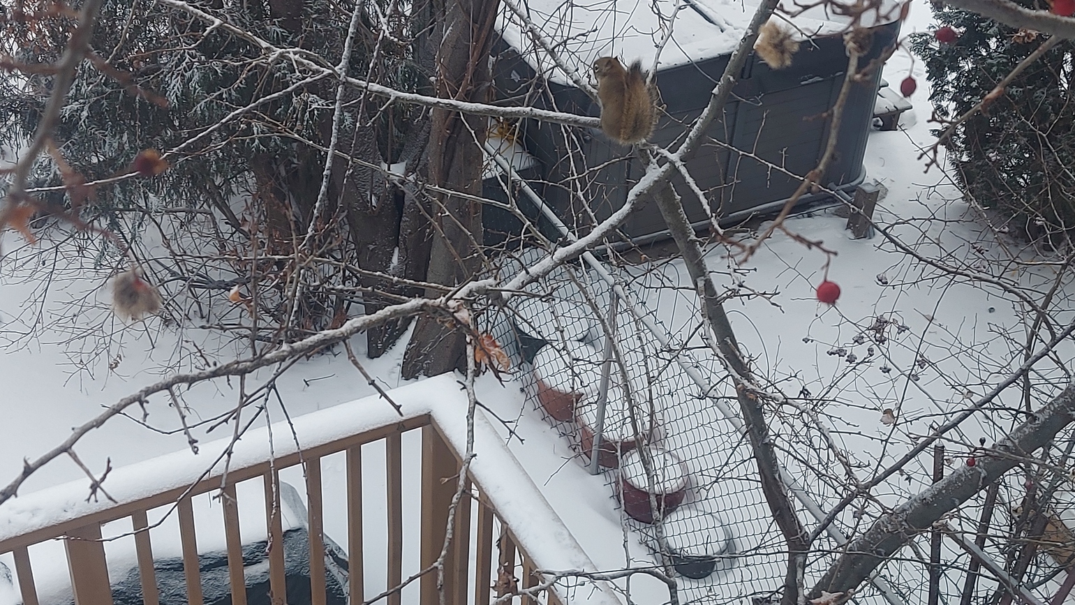 There are focus issues, but I also caught Toothless the Cat, sitting on your sofa, and closely monitoring the Squirrel antics. Boy, she wanted to do something about that nonsense.