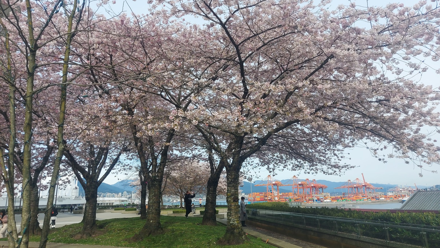 Can you be more-Vancouver than a picture of a cherry tree in full bloom, against the background of Canada Place, and our signature red-crane docks for containers? I say, not.