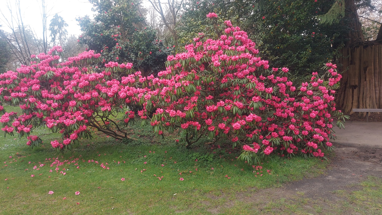 Passing by the other day, I realized the course had one set of blooms that rivalled anything in the nearby gardens I show you every year. I hopped the fence, kept an eye out for flying spheres at my head, and got the shot. Lovely.