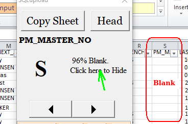 So you just click right on the "Mostly blank" message itself to both hide the column, and jump the "column cursor" one column right to continue on with cleaming up the table.