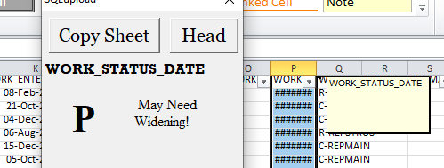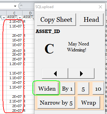 If you have either of the two cases (exponents on the left, #### on the right), and click the WIDEN button, you'll see the column widen one character at a time until the number or date becomes visible, then there's a short wait while it checks all the way to the bottom to be sure they're all good.