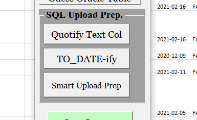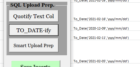 If you've just used the buttons at top to look through the whole table, are satisfied with the columns, then this is the only button you need to prepare the table to be INSERT statements. Numbers will be left, but DATE and CHAR columns will be prepared.